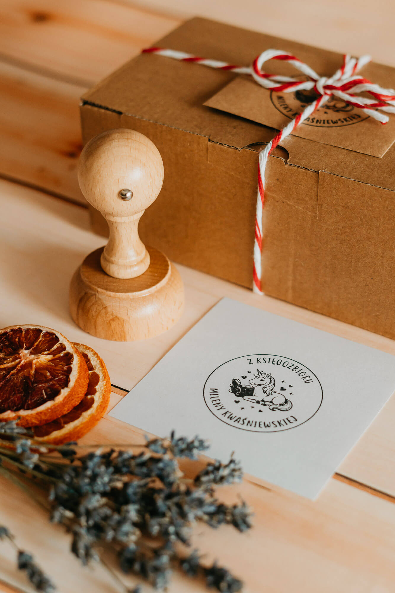 Stemple wkładamy do szykownych bawełnianych woreczków z odbitą pieczęcią przyszłego właściciela i pakujemy tak, by były gotowe do wręczenia. Możliwość podbicia swojej książki spersonalizowaną grafiką z własnym imieniem i nazwiskiem na pewno wywoła uśmiech na twarzy obdarowanego.